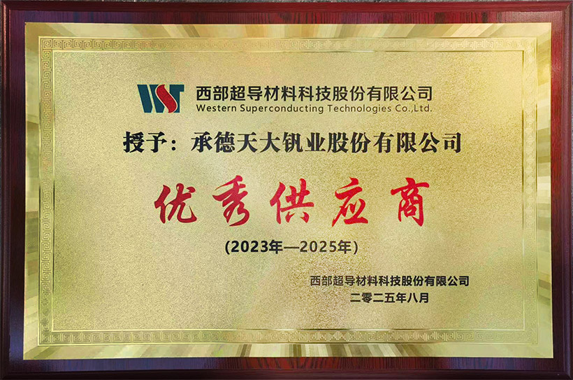喜报!公司荣获西部超导“2023-2025年优秀供应商”称号