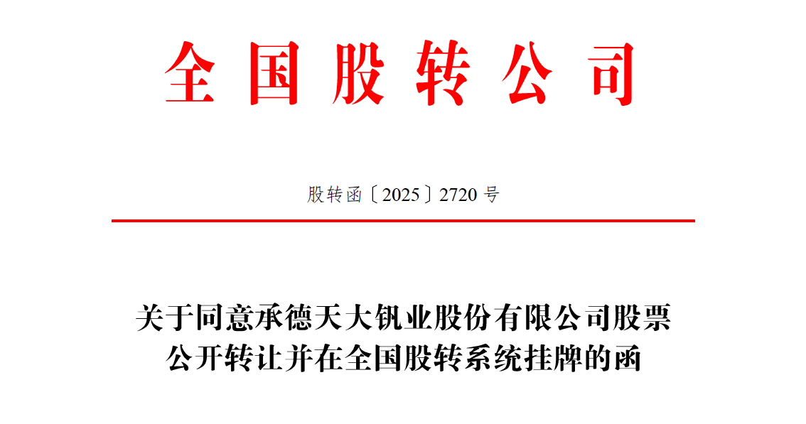 连接未来,资本启航 | 承德天大钒业股份有限公司正式登陆新三板